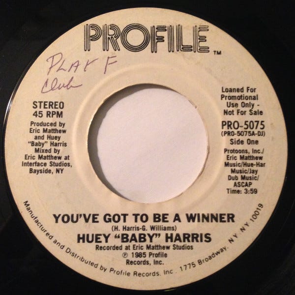 ![Huey "Baby" Harris – You've Got To Be A Winner – Vinyl (7", 45 RPM + 2 more), 1985 [r6400261] | Discogs Huey "Baby" Harris – You've Got To Be A Winner – Vinyl (7", 45 RPM + 2 more), 1985 [r6400261] | Discogs](https://substackcdn.com/image/fetch/$s_!o-Mc!,w_1456,c_limit,f_auto,q_auto:good,fl_progressive:steep/https%3A%2F%2Fsubstack-post-media.s3.amazonaws.com%2Fpublic%2Fimages%2F528b54e7-d9af-4eea-83fd-f202f2c82ab5_600x600.jpeg)